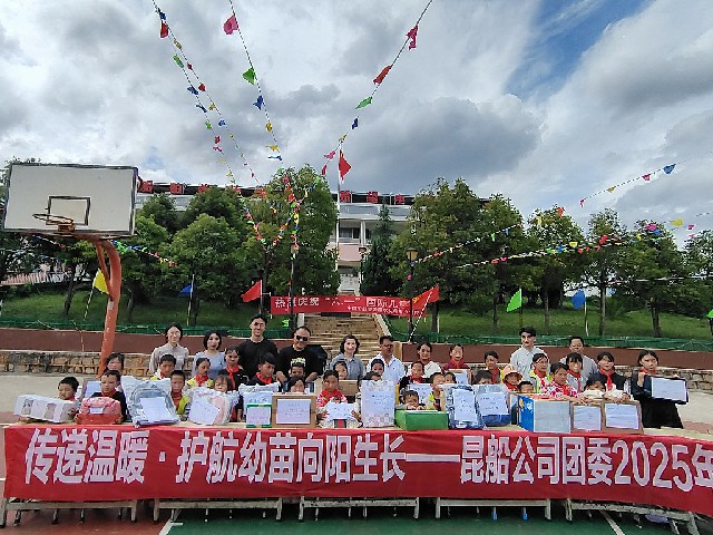 在第75個“六一”國際兒童節來臨之際,昆船公司團委組織部分團員青年和愛心人士赴中國船舶集團援建的丘北縣小矣堵、水頭,勐臘縣尚崗、納卡四所希望小學開展“愛心助學”,將昆船愛心人士的“愛”傳遞到孩子們手里,為孩子們送去節日的祝福。